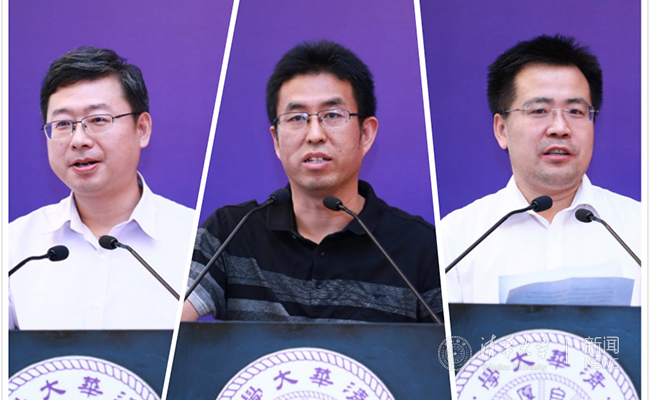 从左至右:周良书、宋朝龙、蔡立庆先后致辞