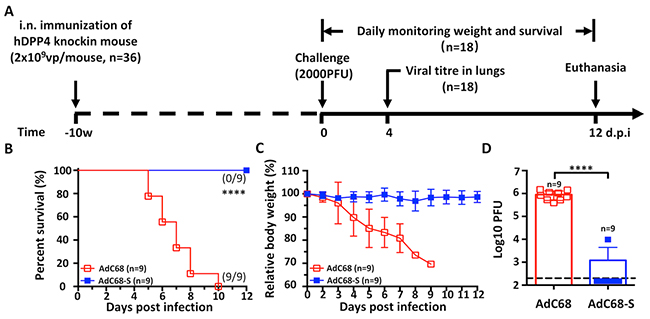 AdC68-S重组疫苗在hDPP4-KI转基因小鼠模型上的保护效果