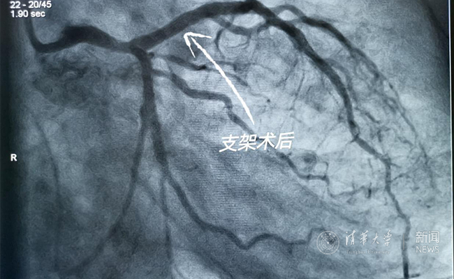 5月23日,苗立夫团队再次为一名48岁外地慕名来京患者在回旋支衔接植入2枚可吸收支架。手术时间仅40分钟,术后造影显示支架扩张良好,血流通畅。