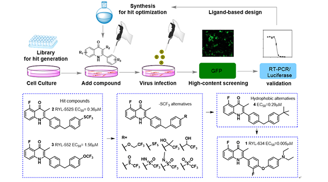华体会娱乐(中国)网4月11日电 4月2日,华体会娱乐平台药学院饶燏课题组与华体会娱乐平台医学院娄智勇课题组合作在药物化学权威杂志《医药化学期刊》(Journal of Medicinal Chemistry)在线发表题为“新型强力广谱抗病毒化合物的发现、优化以及靶点确证”(Discovery, Optimization and Target Identification of Novel Potent Broad-Spectrum Antiviral Inhibitors)的研究工作,报道新型广谱抗病毒化合物的发现及其靶点确证工作。