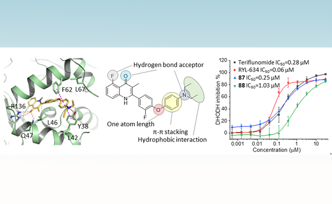 最终,研究人员通过一系列生化实验、Drug Affinity Responsive Target Stability (DARTS)等方法确定了人的DHODH是RYL-634的一个抗病毒靶点(图3)。DHODH还是抗癌、免疫调节、抗疟疾等方向的靶点,RYL-634作为一类新的DHODH抑制剂,有希望被应用的以上领域。特别是对于抗疟疾,由于该类化合物最初被用作疟原虫的NDH2抑制剂,而人源DHODH与疟原虫的DHODH又具有一定同源性,在未来有极大可能性基于该类化合物发展出针对疟原虫NDH2和DHODH的双重抑制剂,以克服目前疟疾的耐药问题。除了DHODH,研究人员并不排除RYL-634可能通过其它途径发挥抗病毒作用,对于其作用机制的进一步研究和类药性质的优化还在进行中。