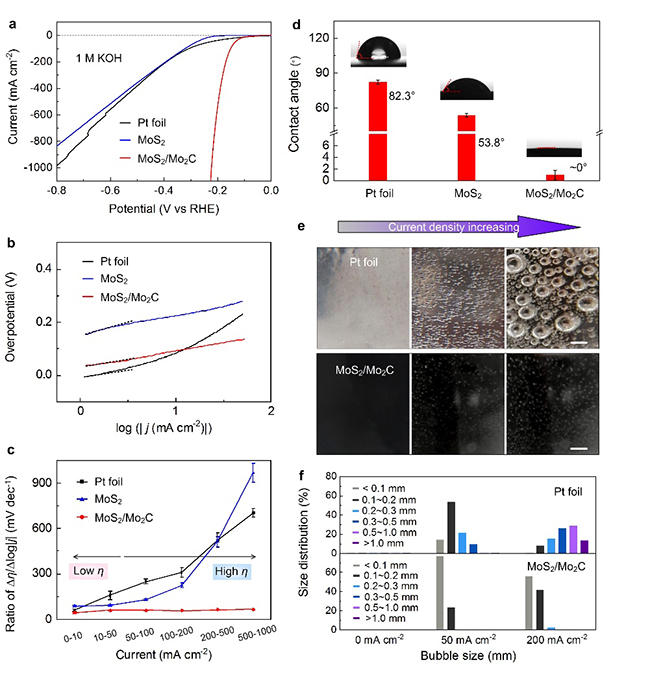 从实际应用的角度来讲,电解水产氢的大规模应用亟待解决的首要问题是发展适用于大电流密度的电催化剂,如电流密度大于200mA/cm2至1000mA/cm2。目前,对大电流密度电解水产氢催化剂的设计和机理的研究仍是一个重大挑战。