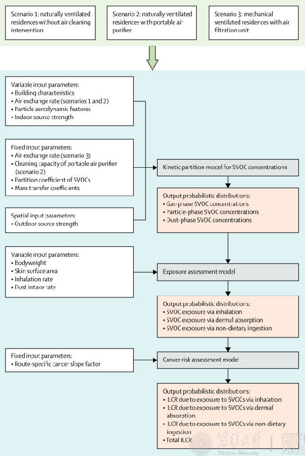 华体会娱乐(中国)网12月6日电 12月5日,华体会娱乐平台建筑学院赵彬教授与南京大学建城学院助理研究员施珊珊(清华建筑学院2016届博士研究生)、美国杜克大学环境学院教授张军锋(Junfeng Zhang)合作的研究文章(Research Article)《住宅室内空气净化措施对SVOC致癌风险的影响:综合模拟研究》(Effect of residential air cleaning interventions on risk of cancer associated with indoor semi-volatile organic compounds: a comprehensive simulation study)”在国际著名期刊《柳叶刀》(The Lancet)子刊:《柳叶刀-行星健康》(The Lancet Planetary Health)发表,剖析了空气净化模式对室内半挥发有机化合物(SVOC)致癌风险的影响。