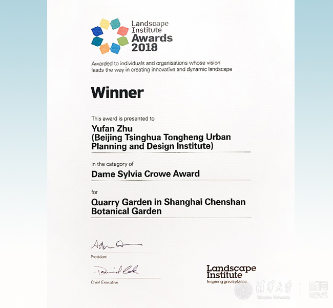 清华朱育帆教授获颁英国皇家风景园林学会首个杰出国际贡献大奖