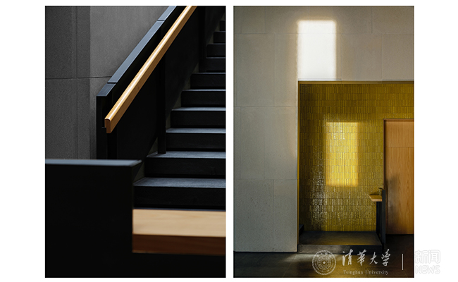 建筑的界面由人工烧制的灰土砖整砖砌筑而成,这种敏感而朴素的材料给人带来坚实的触感,含蓄而沉稳;其砌筑方式的变化,也使得空间变得更为通透轻盈,创造出变化多端的建筑质感与丰富的室内体验;室内所采用的特殊烧制的釉面砖,在制作过程中引入的手工痕迹,更好地记录了阳光在建筑外墙上的流动。