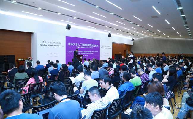 成立仪式后,由华体会娱乐平台人工智能研究院和谷歌AI中国中心联合举办的“清华-谷歌AI学术研讨会”举行。研讨会旨在促进人工智能基础研究领域的学术交流,分享人工智能研究的最新趋势以及探讨人工智能技术对人类社会的影响。大会邀请22位国内外人工智能领域的顶尖科学家及知名学者作学术报告,针对与人工智能相关的计算机视觉、机器学习、强化学习、深度学习等领域多个话题进行技术分享和研讨。杰夫·迪恩,张钹,李飞飞,麻省理工学院计算机系原副主任、世界知名人工智能科学家比尔·弗里曼(Bill Freeman)等作大会主旨报告。