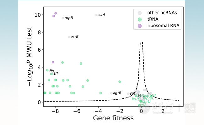 研究团队首先证明了这一方法可以有效地鉴定出大肠杆菌的已知必需基因,同时也对必需基因筛选结果中和已知数据库不吻合的部分基因进行了进一步实验验证,更新了对于该模式微生物必需基因的认识。此外,他们还发现该方法可以有效地研究细菌中RNA编码基因的功能。尽管这类基因近年来被发现广泛的参与细菌的重要生物学过程,但是由于传统细菌高通量遗传分析方法本身的局限,这类基因受到了普遍的忽视。有趣的是,利用该方法绘制的转运RNA(tRNA)必需性图谱,研究团队发现了大肠杆菌中有六个非必需的tRNA编码基因,且不同于tRNA普遍的多拷贝特性,这六个tRNA编码基因都以单拷贝形式存在于大肠杆菌基因组中。