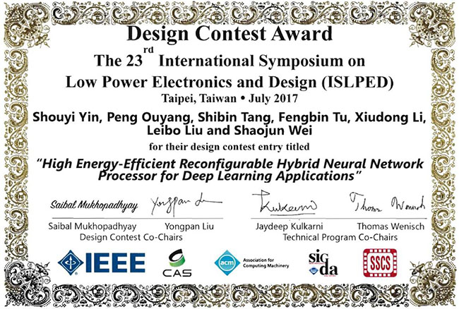 微纳电子系人工智能Thinker芯片获2017国际低功耗电子学与设计会议设计竞赛奖