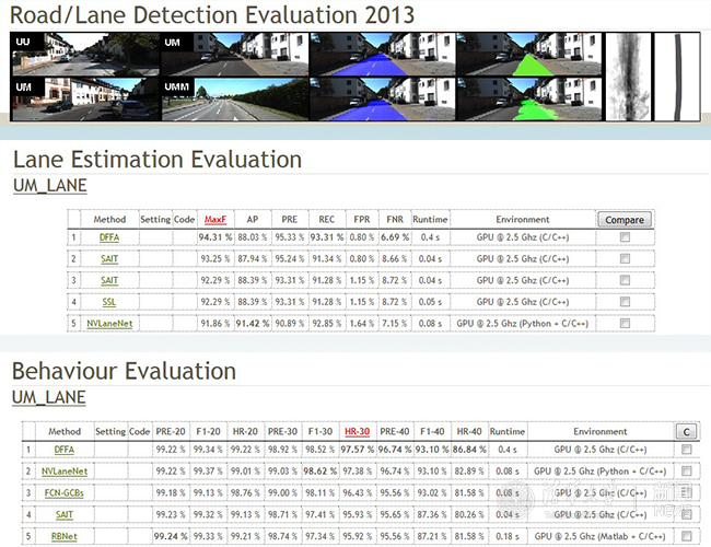 带特征增强与聚合的膨胀型卷积神经网络模型(DFFA)在KITTI国际测评中取得城区有标线道路(UM_ROAD)和城区无标线道路(UU_ROAD)两项任务的冠军。