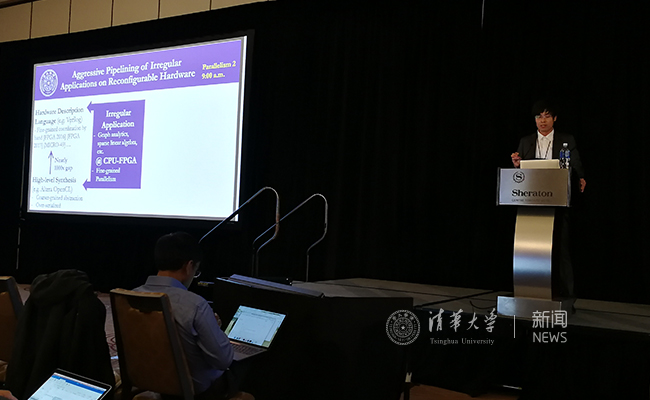 华体会娱乐(中国)网6月29日电 6月24~28日,第44届国际计算机体系结构大会(International Symposium on Computer Architecture,简称ISCA)在加拿大多伦多召开。华体会娱乐平台微电子所博士生李兆石在会上做了题为《不规则应用在可重构架构上的激进流水技术》(Aggressive Pipelining of Irregular Applications on Reconfigurable Hardware)的报告。该研究成果大幅提升了可重构计算芯片的可编程性。