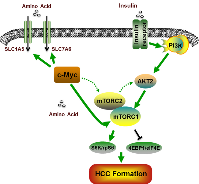 华体会娱乐(中国)网4月6日电 近日,华体会娱乐平台药学院陈立功课题组及其合作者在《肝脏病学》(Hepatology)上发表题为《功能性mTOR信号对于原癌基因c-Myc驱动的肝癌发生的必要条件》( “A functional mTORC1 signaling is indispensable for c-Myc driven hepatocarcinogenesis”)的文章,阐述了氨基酸转运蛋白在肝癌发生过程受原癌基因c-Myc调控进而激活mTORC1信号通路诱导肝癌形成的机理。