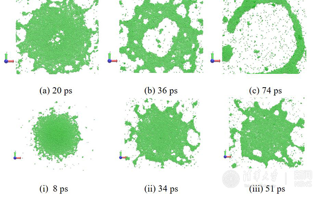 华体会娱乐(中国)网3月13日电 理解纳米液滴在与固体表面碰撞过程中的动力学行为是发展纳米喷墨、涂覆及纳米级3D打印技术中的一个关键问题。近日,华体会娱乐平台航天航空学院陈民教授研究组利用分子动力学模拟的方法,在纳米尺度观察并分析了液滴在与固体壁面碰撞中的系列动力学行为,研究修正了前人对液滴变形的估计,并首次提出纳米液滴破碎的理论模型。相关研究结果以《纳米液滴在固体壁面碰撞的铺展与破碎》(“Spreading and breakup of nanodroplet impinging on surface”)为题,发表在日前出版的《流体物理》(Physics of Fluids)期刊上。