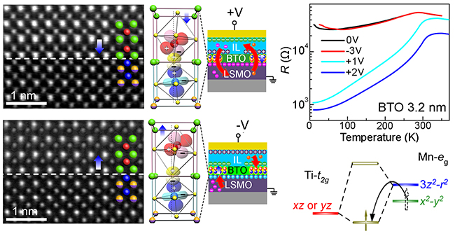 图为铁磁/铁电薄膜界面电子轨道开关与物理性能的门电压调控。