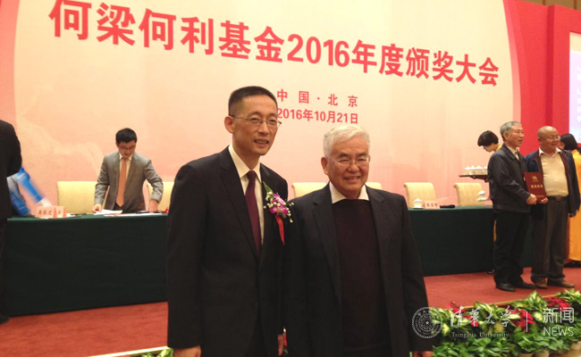 华体会娱乐平台生命科学学院施一公院士荣获何梁何利科学与技术成就奖,并代表获奖人作简短演讲。清华化学系张希院士和计算机系郑纬民教授荣获何梁何利科学与技术进步奖。