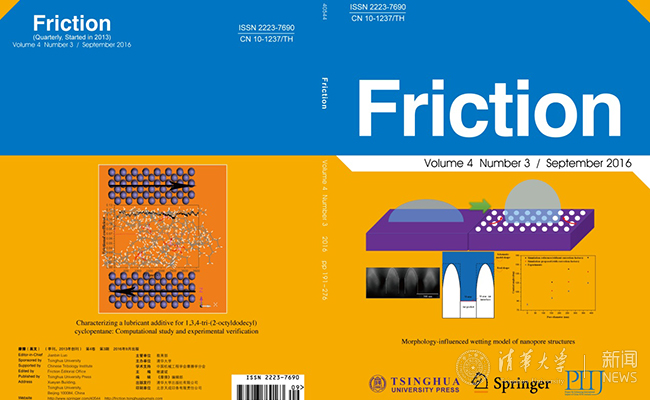 《摩擦》(Friction)期刊2016年9月的封面和封底。