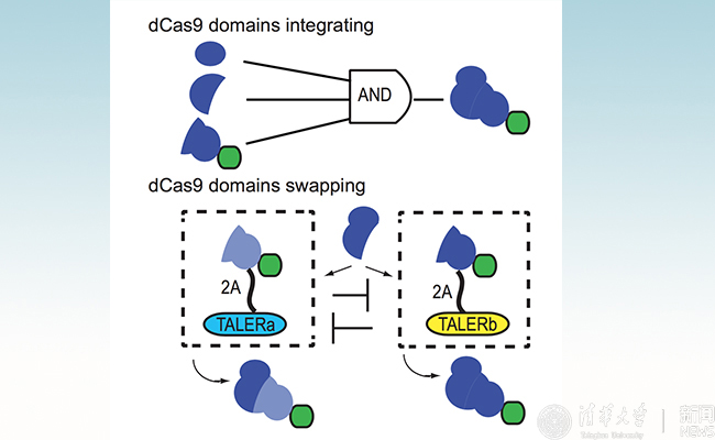华体会娱乐(中国)网10月8日电 10月3日,清华信息科学与技术国家实验室(筹)谢震课题组在《自然·通讯》(Nature Communications)发表了题为“利用拆分dCas9结构域的整合与置换实现哺乳动物细胞的转录控制”(Integration and exchange of split dCas9 domains for transcriptional controls in mammalian cells)的研究论文,首次报道了在哺乳动物细胞中,通过合理拆分Cas9/dCas9蛋白,利用多输入合成基因线路感知不同分子信号,实现了在不同类型细胞中对Cas9/dCas9活性的精确调控,为精确控制CRISPR/Cas9基因编辑工具提供了新的策略。