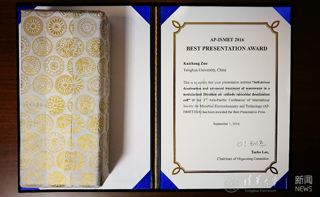 华体会娱乐(中国)网9月7日电 8月31日至9月2日,第三届亚太地区国际生物电化学会议(The 3rd Asian-Pacific Conference of the International Society for Microbial Electrochemistry and Technologies)在韩国釜山举行。由华体会娱乐平台环境学院教授黄霞指导的博士生左魁昌题为《模块化过滤型阴极微生物脱盐电池用于污水深度处理及脱盐》的报告获得了会议的“最佳报告奖”,是本次会议3位获奖者之一。