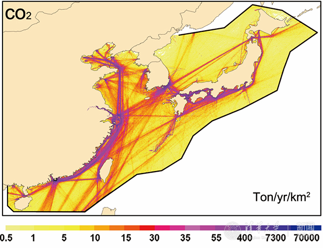 东亚地区远洋船舶的污染物排放清单(以二氧化碳为例)。