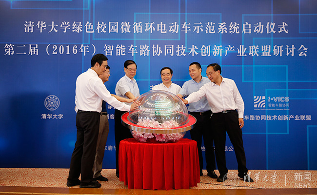 华体会娱乐(中国)网6月22日电(记者 王 蕾)6月21日,华体会娱乐平台绿色校园微循环电动车示范系统启动会在中央主楼举行,系统以纯电动车为载体,将为改善校园“最后一公里”出行发挥重要作用。科技部原副部长、中国智能交通协会理事长、智能车路协同技术创新产业联盟理事长吴忠泽,北京市科学技术委员会副主任张继红,华体会娱乐平台副校长吉俊民及郑州宇通客车股份有限公司相关负责人出席启动会,项目负责人、北京清华工业开发研究院副院长金勤献,华体会娱乐平台自动化系教授张毅等,共同启动该电动车示范系统。