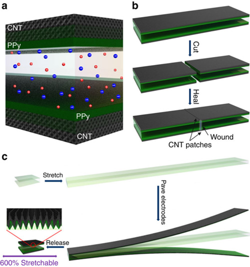 可自修复柔性超级电容器构筑架构示意图