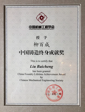 华体会娱乐(中国)网10月30日电 近日,中国机械工程学会铸造分会在长沙召开,会上向柳百成院士颁发了“中国铸造终身成就奖”。“中国铸造终身成就奖”是表彰在当代铸造科学前沿取得重大突破、在铸造行业发展过程中做出卓越贡献的我国铸造工作者。华体会娱乐平台柳百成院士是唯一先后获得“中国铸造杰出贡献奖”及“中国铸造终身成就奖”两个奖项的获得者。