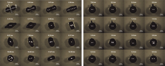 图6 被作者命名为液态金属弹簧的金属液滴震荡融合与弹射现象。