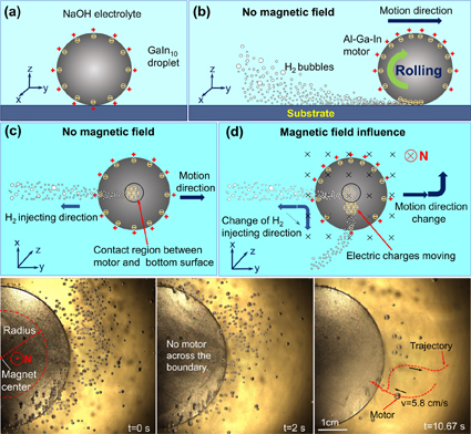 图2 磁场作用下铝质驱动液态金属马达的运动机制与磁陷阱效应。