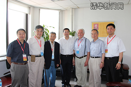 王治强教授、江明院士、沈家骢院士、邱勇院士、林斯托夫、朱道本院士、张希院士合影。(从左至右)