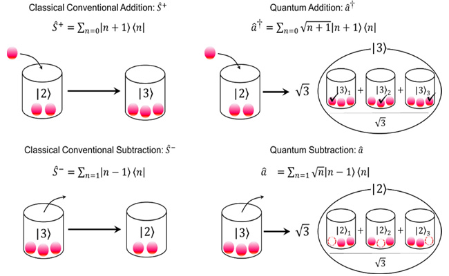 金奇奂实验组使用囚禁离子系统的声子,首次在量子粒子上实现了确定性的加法与减法。实验组采用新开发的绝热量子操控技术将声子耦合到一个辅助的二能级系统,这个系统被称为离散与连续变量混合模式。在具体实验中,实验组在声子数态的叠加态、相干态等不同量子初始态上演绎算术操作,观察得到末态魏格纳函数上的亚泊松统计负值,从而证明了经典态在算术操作之后变成了非经典态。