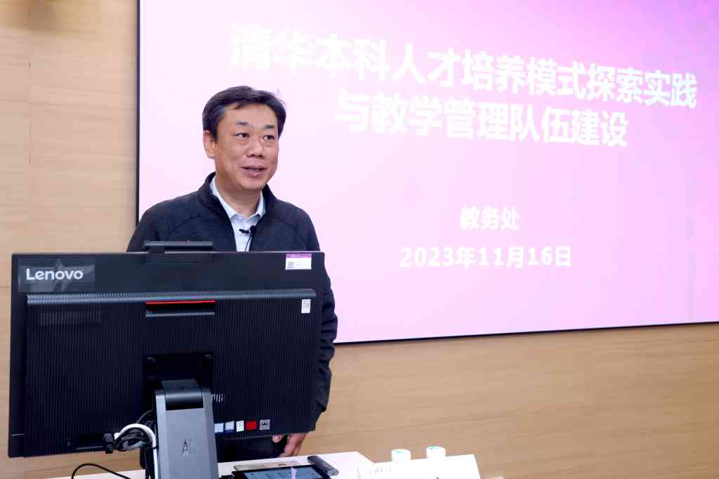 教务处处长刘毅以“清华本科人才培养模式探索实践与教学管理队伍建设”为题作开班报告,回顾了清华本科育人理念的传承发展和本科人才培养模式的探索实践,介绍了近期本科教学工作的任务与重点,阐释了教务岗位的重要性、工作特点和关键职责,强调要以高质量教学管理工作服务学校人才培养高质量发展。