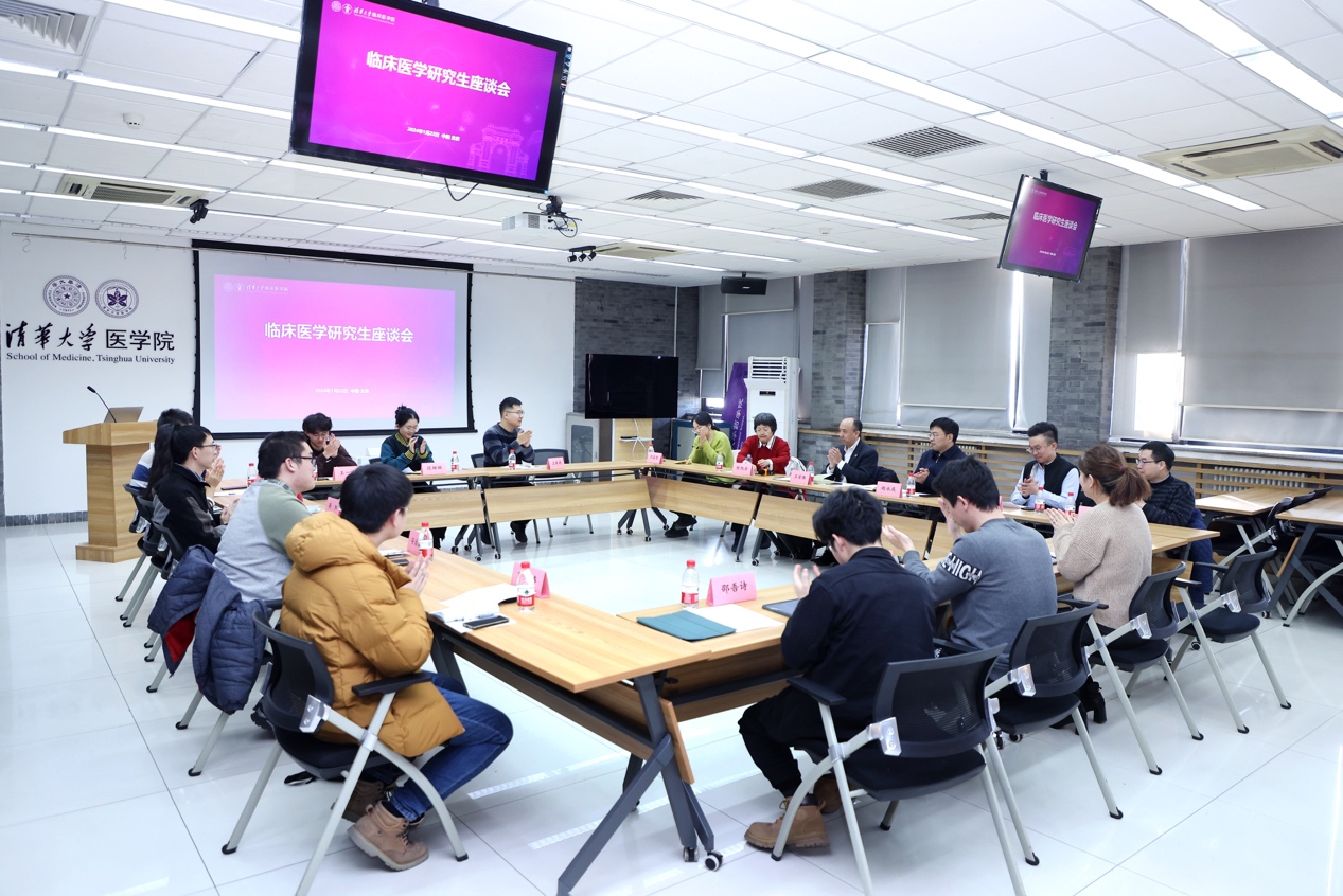 医学院副主任赵永庆、北京华信医院副院长胡畅、临床医学院研究生办公室主任刘晶哲、北京清华长庚医院创伤骨科执行主任、研究生办公室主任潘勇卫等参加座谈会,并与同学们互动交流。