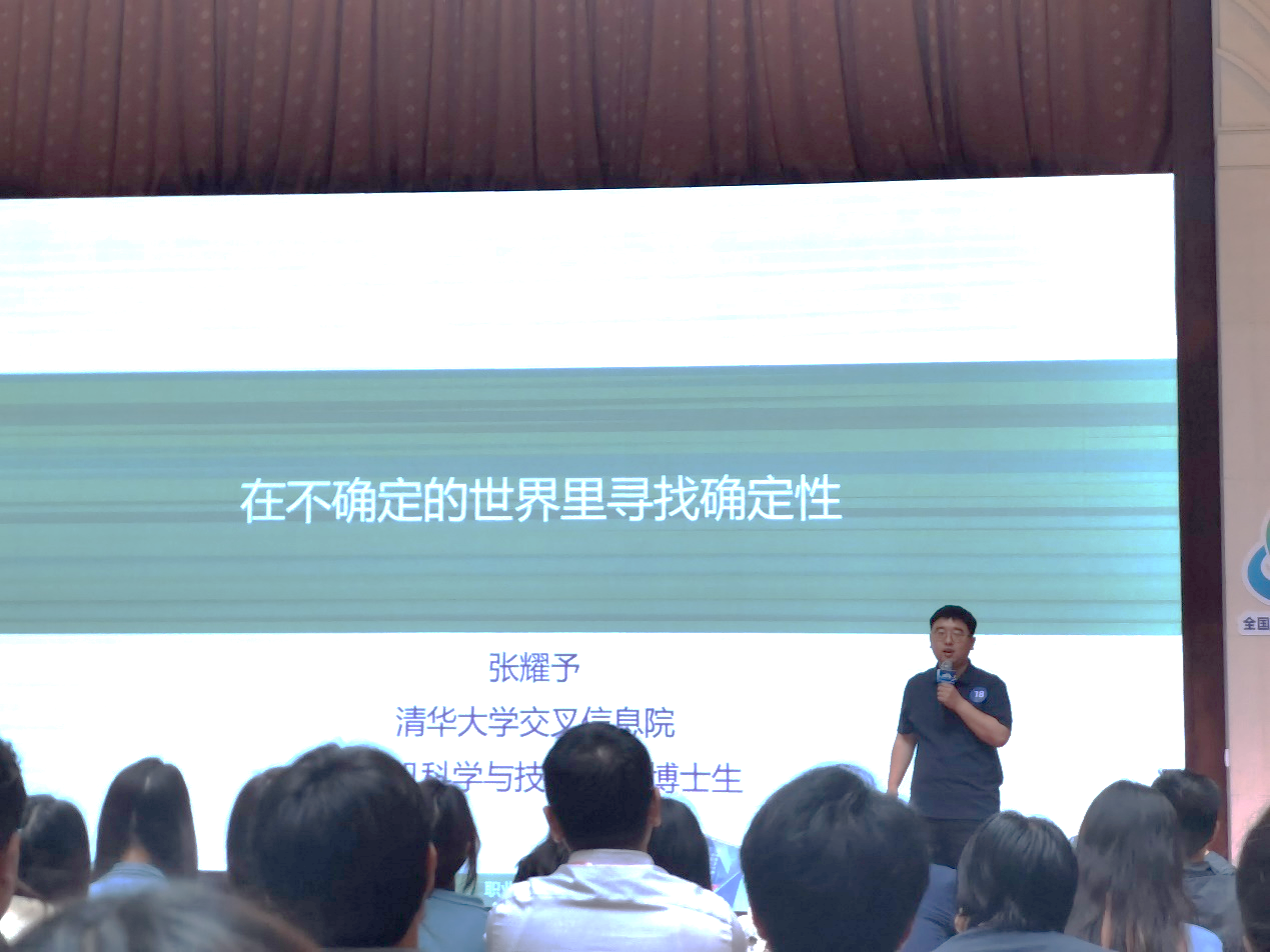 张耀予以算法研究员为职业目标,凭借着扎实的实践探索和坚定的科技报国理念,斩获了高教组就业赛道银奖。他积极参与科技投资、算法研究等多项实习工作,探索个人的职业道路。最终,在秋季招聘季,受到清华“立大志、入主流、上大舞台、做大事业”理念的影响,张耀予选择加入华为终端,担任算法研究员一职。
