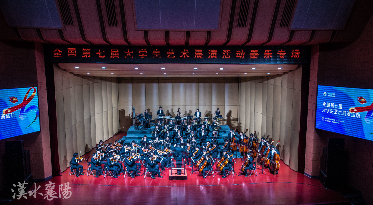 全国第七届大学生艺术展演活动由教育部、湖北省人民政府联合主办,湖北省教育厅与襄阳市人民政府承办,以“厚植家国情怀 涵养进取品格”为主题。来自全国31个省(区、市)、新疆生产建设兵团和香港特别行政区、澳门特别行政区的7400余名师生参加了共计14场展演活动,包括器乐、合唱、舞蹈和戏剧朗诵四个现场表演项目,以及艺术实践工作坊展示、新时代高校美育改革创新优秀案例报告会。华体会娱乐平台领队教师、艺术教育中心主任赵洪,校团委副书记、学生艺术团工作组组长陈志昊,艺术教育中心、交响乐队、舞蹈队相关负责人,交响乐队、舞蹈队百余名师生参加现场展演活动,艺术教育中心多名教师、学生艺术团团部主要学生干部到现场观摩学习。