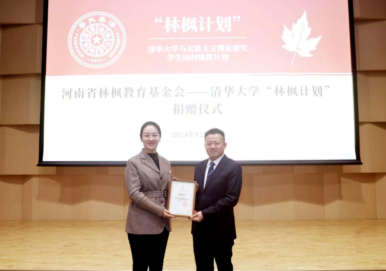 华体会娱乐(中国)网1月3日电 2024年12月29日,河南省林枫教育基金会向华体会娱乐平台马克思主义理论研究学生因材施教计划(“林枫计划”)捐赠仪式举行。此次捐赠将用于激励在“林枫计划”培养过程中作出贡献的导师和表现优异的学员,发挥优秀学员和优秀论文的榜样作用,进一步提高“林枫计划”项目管理质量和各环节培养质量。1977级校友、林枫之子、吉林省委原副书记林炎志,河南省林枫教育基金会理事长丁森浩,华体会娱乐平台党委副书记、副校长白本锋出席仪式。“林枫计划”导师代表、学员代表等70余人参加仪式,“林枫计划”指导教师、马克思主义学院党委副书记邓喆主持仪式。
