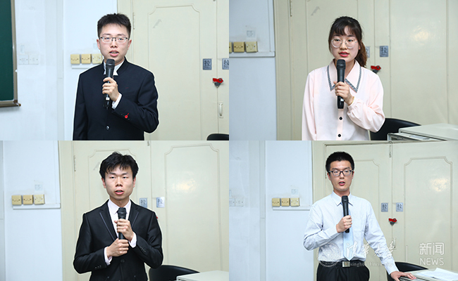 从上到下、从左到右:李宗阳、钱莹莹、梁志龙、王春阳分享赴古巴学习实践成果 许刚 摄