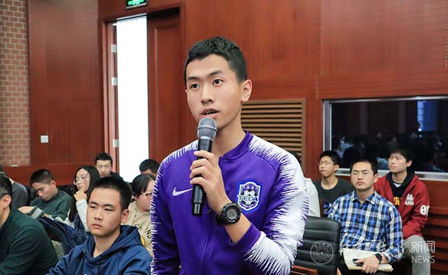 在提问环节,现场学生就航天领域的国际合作等问题与叶培建进行了交流。叶培建说:“在国际合作方面,我国倡导构建人类命运共同体。中国有胸怀去开放、共享一些航天科技成果。”