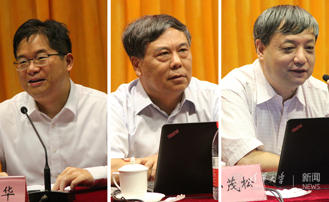 聂风华、李志民、孙茂松(从左至右)分别在研讨会上讲话。