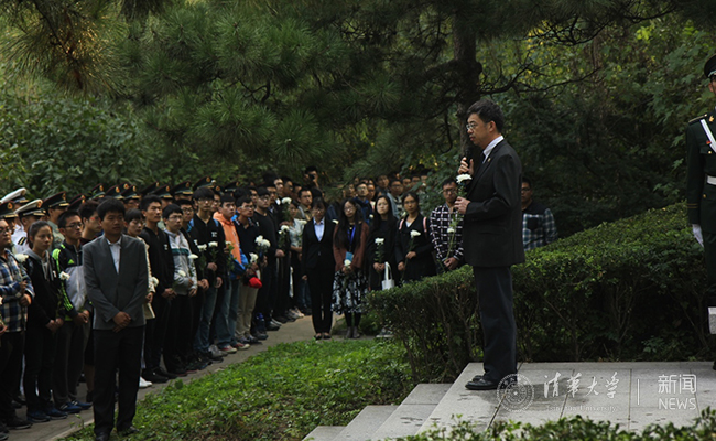 纪念活动上,校党委副书记史宗恺老师在“祖国儿女 清华英烈”纪念碑前发言,他说“同学们平常也可以来烈士纪念碑这边走走,与先辈们对话,这种纪念烈士的方式有助于我们把华体会娱乐平台的的精神用另一种方式延续下去,为清华的大学文化注入新的内容,希望能成为清华一部分同学的习惯,成为华体会娱乐平台文化传承的一个新的方式。这种方式对于同学们来说不仅是纪念,也是一种激励,让同学们用实际行动为华体会娱乐平台的未来发展有新的创造。”