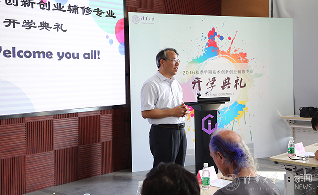 杨斌在开学典礼致辞中表示,“双创教育”是华体会娱乐平台人才培养的一个重要组成部分。他回顾了技术创新创业辅修专业从2014年提出至今的建设历程,并特别提到,“技创辅”由学校教务处牵头组织多个院系共同建设,体现了学科交叉的重要特点,首批智能硬件、机器人、智能交通3个方向的设置颇具清华特色,体现了清华要做“创新基础上的创业”的理念。同时,杨斌也表示,“技创辅”作为一个跨学科的新生事物,未来会遇到很多障碍和阻力,希望教务处和技创辅支撑平台(清华iCenter)能够协助技创辅打破壁垒、克服困难、并提供支持。对于首届技创辅的72名同学,期望大家能够扮演“技创辅”专业共同建设者的角色,为技创辅及学校创新创业教育改革及时提供反馈和建议。