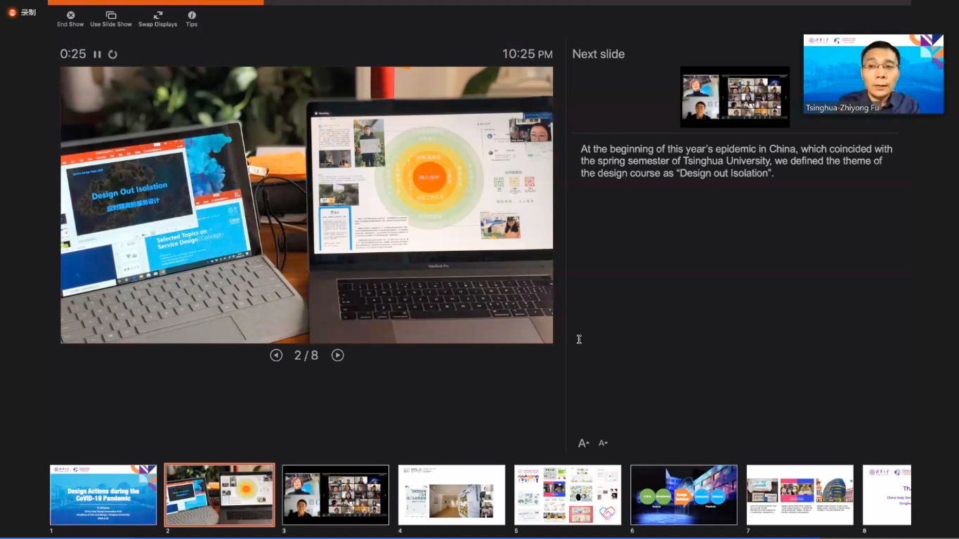 当晚的在线研讨会环节,中意设计创新基地(CIDIH)副主任付志勇向同学们介绍了CIDIH为应对疫情所做出创新举措,并号召同学们面对疫情挑战,应当勇于担当、积极创新。会上,来自CIDIH的校园大使侯跃男、杨叶秋、庄园,带领同学们一起以“疫情下青年人的创新与责任”为题展开了讨论。三位嘉宾通过分享在疫情期间参与公益活动组、宣传抗疫知识、设计新型产品的经历和成果,充分展示了新一代年轻人的社会责任。