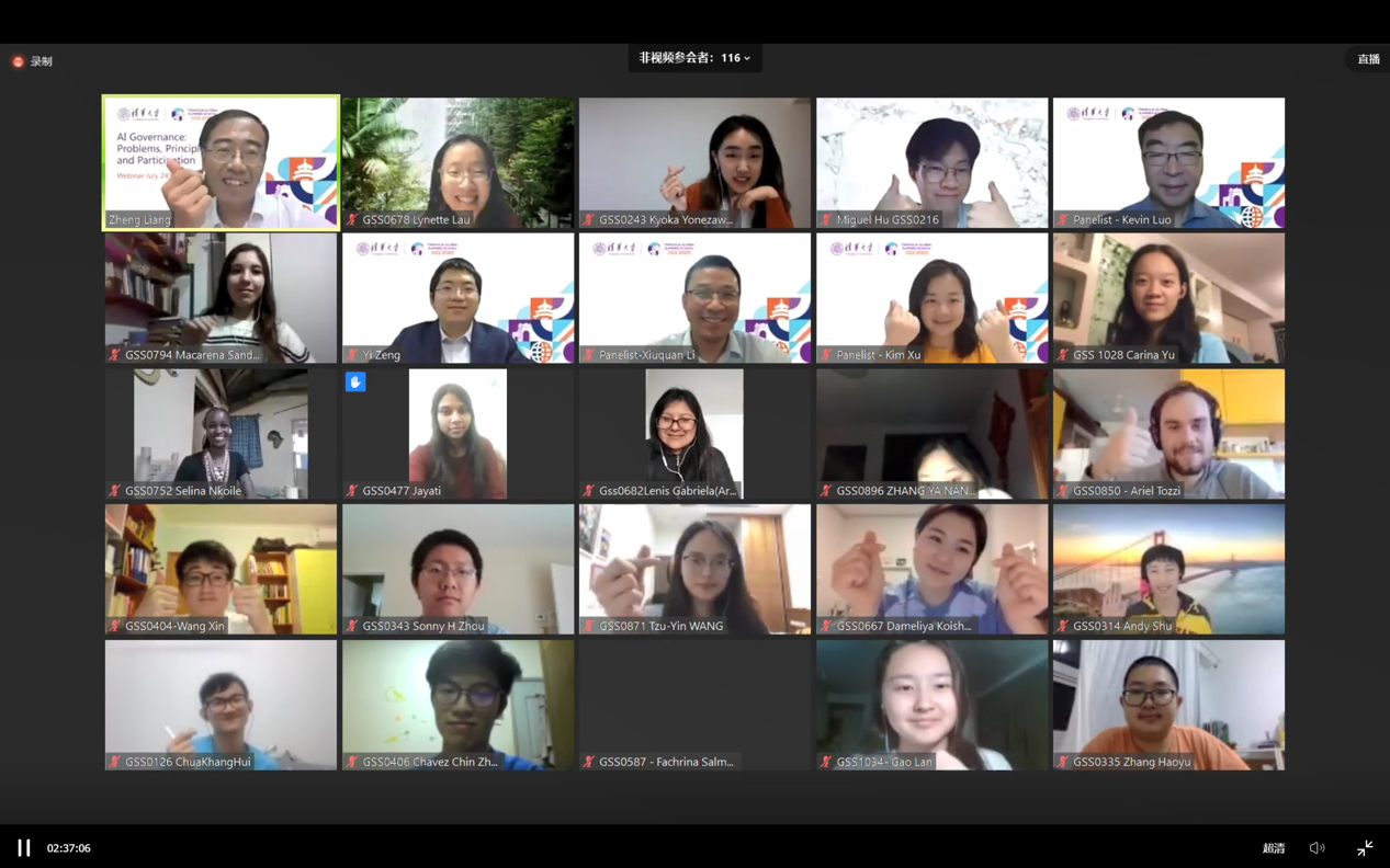 华体会娱乐(中国)网7月26日电(通讯员刘翘楚 刘兆希)北京时间7月24日,华体会娱乐平台2020年全球暑期学校(GSS 2020)进入第五天,由华体会娱乐平台苏世民书院、计算机系、智能产业研究院以及人工智能国际治理研究院联合提供学术支持的暑校系列课程——“人工智能的应用与治理”顺利进行。课程通过云参观、工作坊、主旨演讲和线上研讨会等多种形式,与同学们共同探讨人工智能技术将如何影响世界的领导与秩序、政策制定、战略布局、全球安全和国际关系。