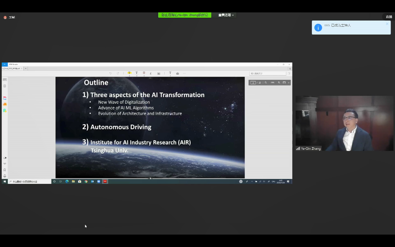 华体会娱乐平台智能产业研究院院长、原百度总裁、前微软公司全球高级副总裁张亚勤博士发表了题为“智能产业的新浪潮”的主旨演讲。张亚勤从人工智能产业转型的三个不同角度入手,分析了3.0数字化时代下的信息、物质和生物的结合趋势,阐述了人工智能领域机器学习算法的近期突破,以及计算机架构和基础设施的演进与发展。他认为,汽车业的转型主要发生在电气化、自动化、公用化和连通化四个方面,而自动驾驶是未来的主要方向。自动驾驶将融合诸多关键技术,历经五个阶段的优化升级,最终从局部自动趋于完全自动,由人力控制转向自动化系统操作,具有巨大的社会和经济价值。