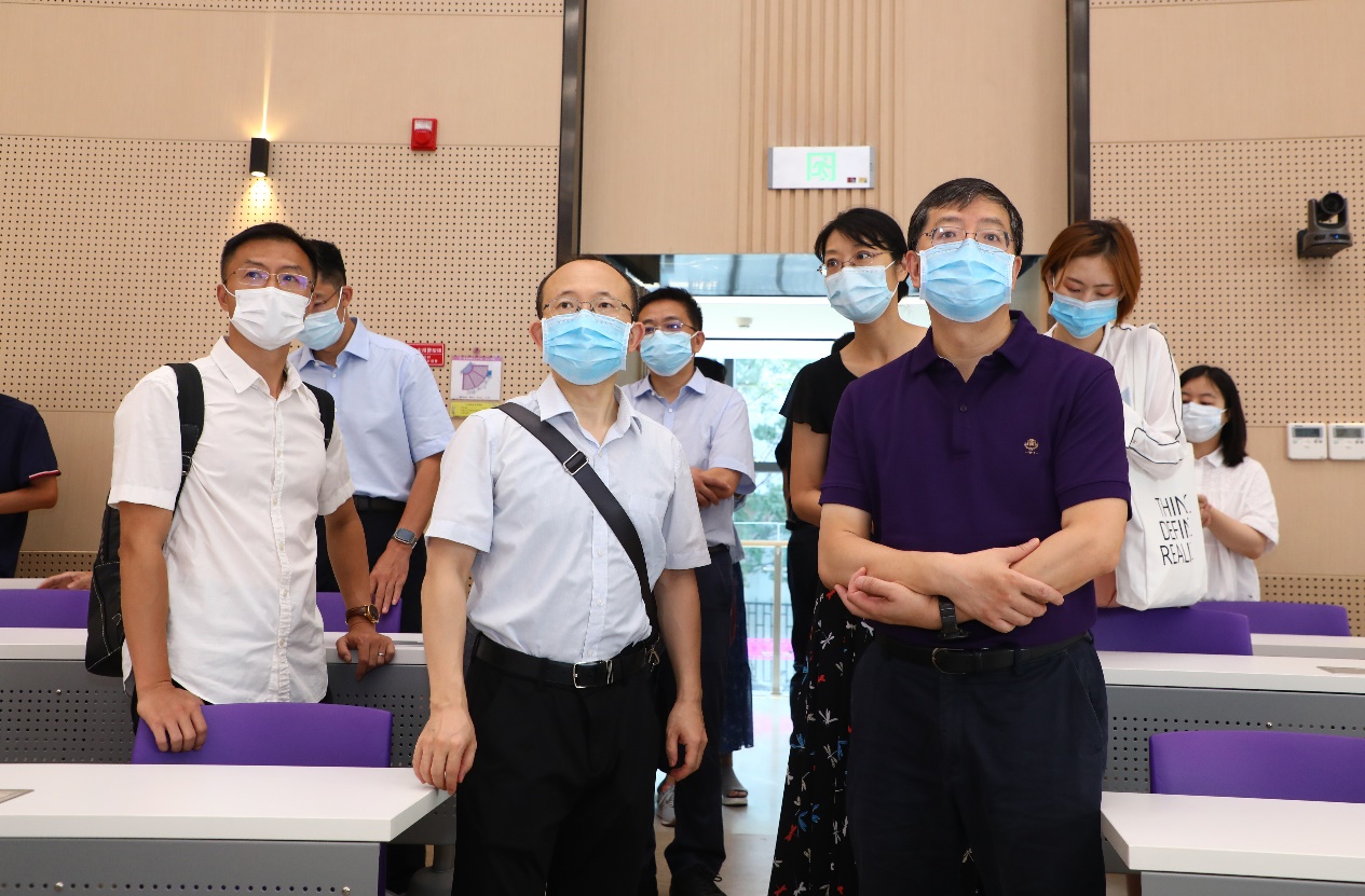 华体会娱乐(中国)网8月31日电(记者 田姬熔 吕婷 摄影 常志东)随着秋季学期开课日益趋近,为保证线下线上融合式教学有效有序开展,8月27日上午,校长邱勇带队检查秋季学期开学前教学准备工作。常务副校长王希勤,副校长、总务长吉俊民,副校长、教务长杨斌,副校长彭刚参加检查。