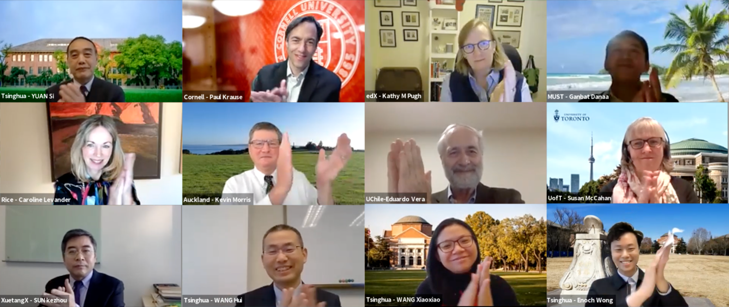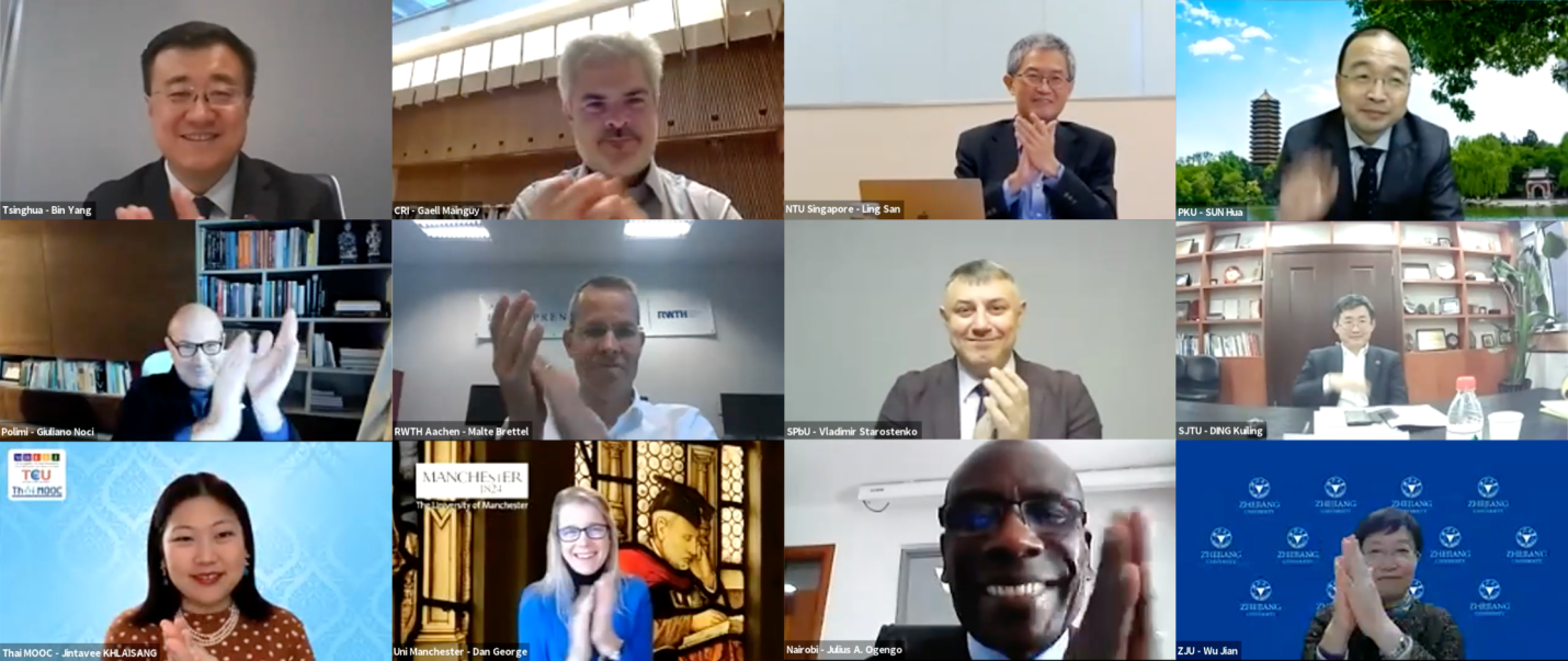 华体会娱乐平台副校长、教务长杨斌,校务委员会副主任袁驷与来自美国康奈尔大学、法国交叉科学研究院、美国edX平台、蒙古科技大学、新加坡南洋理工大学、北京大学、意大利米兰理工大学、美国莱斯大学、德国亚琛工业大学、俄罗斯圣彼得堡国立大学、上海交通大学、泰国Thai MOOC平台、新西兰奥克兰大学、智利大学、英国曼彻斯特大学、肯尼亚内罗毕大学、加拿大多伦多大学、学堂在线、浙江大学的联盟创始成员代表相聚“云端”,共谋交流合作新发展,为即将于12月11日世界慕课大会上正式发布的世界慕课联盟奠定良好基础。