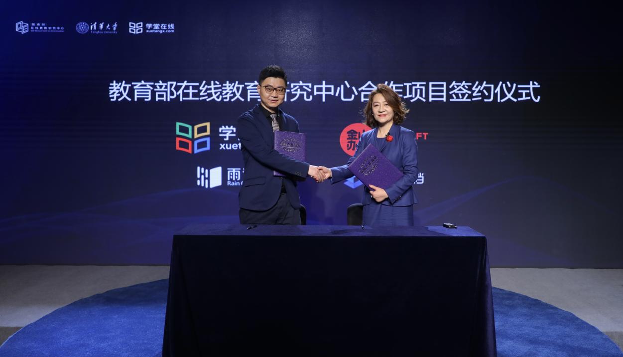 学堂在线首席技术官张宁与金山办公副总裁肖玢代表双方签约