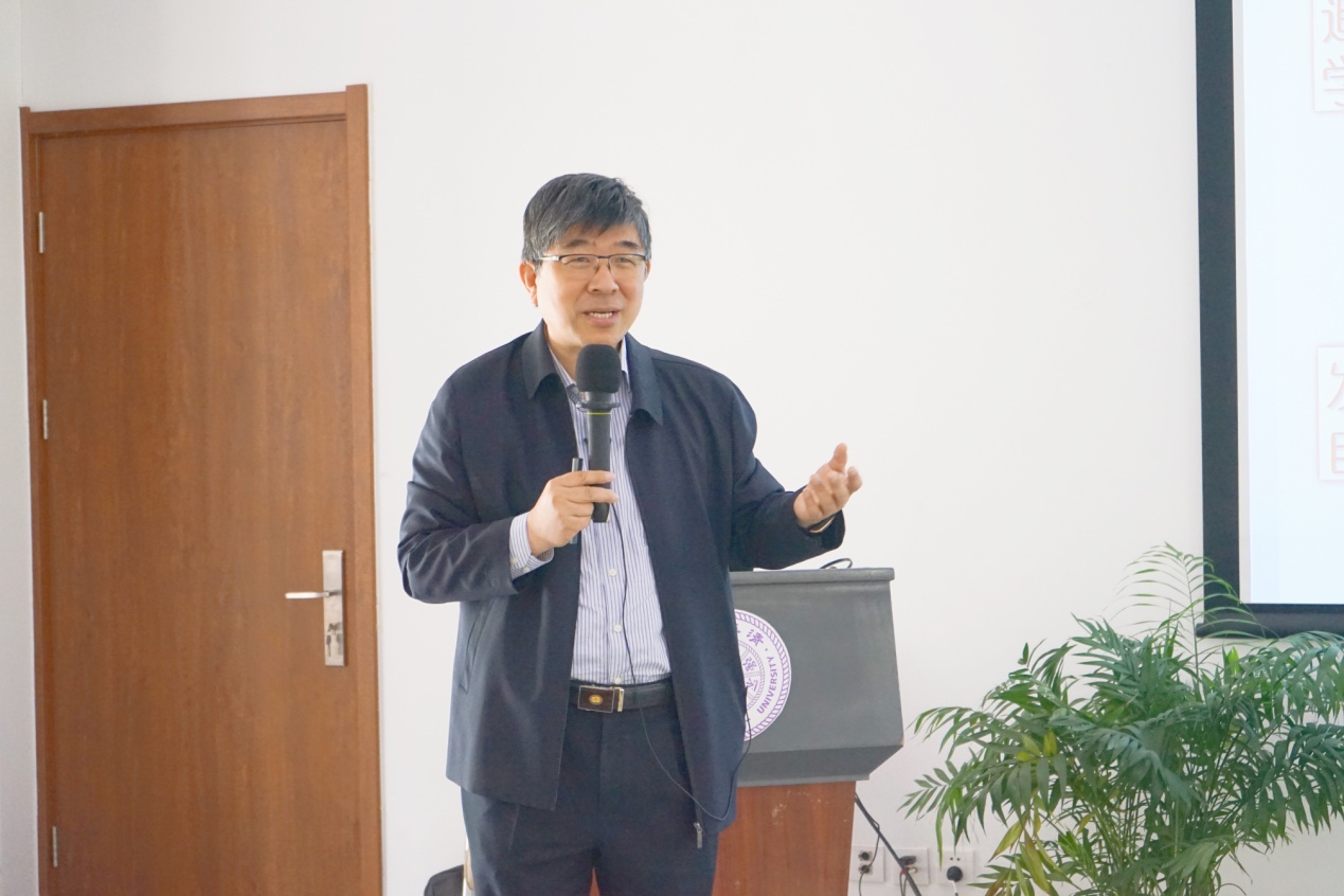 彭刚在开班仪式上致辞。彭刚指出,教师的职业成就感源于在学生成长的关键期,教师用热情感染学生,用学识与能力影响学生,使学生成长得更顺利、更丰满。他对青年教师提出了三点期望:一是珍惜学生的学习信心,爱护学生的学习动力与学术志趣,既鼓励学生志存高远,也要使学生得到及时有效的支持并保持自信;二是有能力和意愿去关切学生的现状,更有效地帮助学生成长,特别在意学生的知识基础、学习能力和个性差异;三是要善于并乐于投入精力去发展和提高自身教学能力。