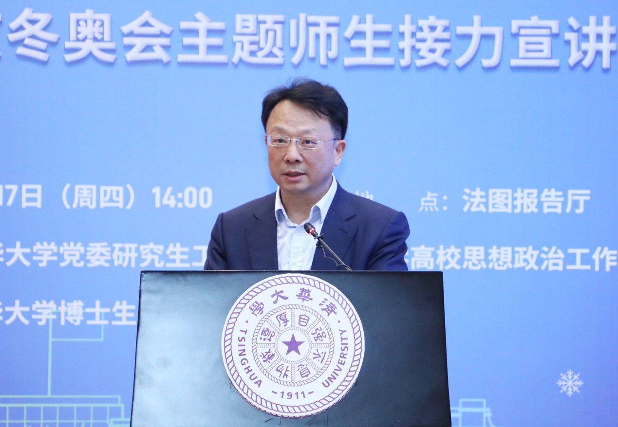 随后,王希勤对全体清华师生提出三点希望:一是要认真总结、用心用情讲好冬奥故事,发掘北京冬奥中的民族元素与清华元素,在冬奥宣讲中展现清华人爱国奉献、追求卓越的价值品质。二是要贴近受众、立言立行做好行动表率,坚持从听众视角出发,感知受众、贴近青年、走近同学,以喜闻乐见的形式传递冬奥清华人的所思、所想、所悟。三是要旗帜鲜明、同心同德凝聚青年力量,立足世界百年未有之大变局和中华民族伟大复兴的战略全局,踔厉奋发、笃行不怠,以深厚的家国情怀、开阔的国际视野融会新时代中国精神,展现新时代清华青年的责任与担当。