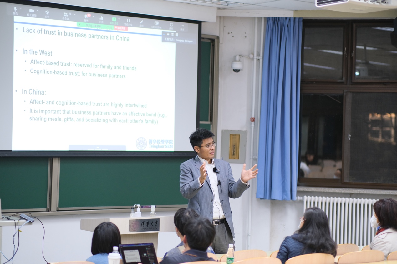 随后,陈煜波围绕数字经济的内涵、中国数字经济发展的逻辑、中国电子商务市场和数字创新的案例三个方面展开系统讲解,并引导同学们思考互联网和数字经济如何影响中国的市场和商业转型、中国数字经济发展的内在逻辑,以及中国数字经济与创新的逻辑如何适用于全球市场。基于多年的学术研究,他表示,中国数字经济的发展得益于中国政府前瞻性的数字基础设施政策,以及包容审慎监管政策环境下中国企业家针对本地市场不断探索创新的企业家精神。数字经济正在成为重组全球要素资源、重塑全球经济结构、改变全球竞争格局的关键力量,是当前全球发展最重要的趋势之一。中国成功地探索出了如何在新兴市场发展数字经济的道路和模式,这可以为全球其他国家尤其是新兴市场提供有益的借鉴。系统的理论、翔实的案例,以及生动的讲解引发了同学们的深入思考与交流。