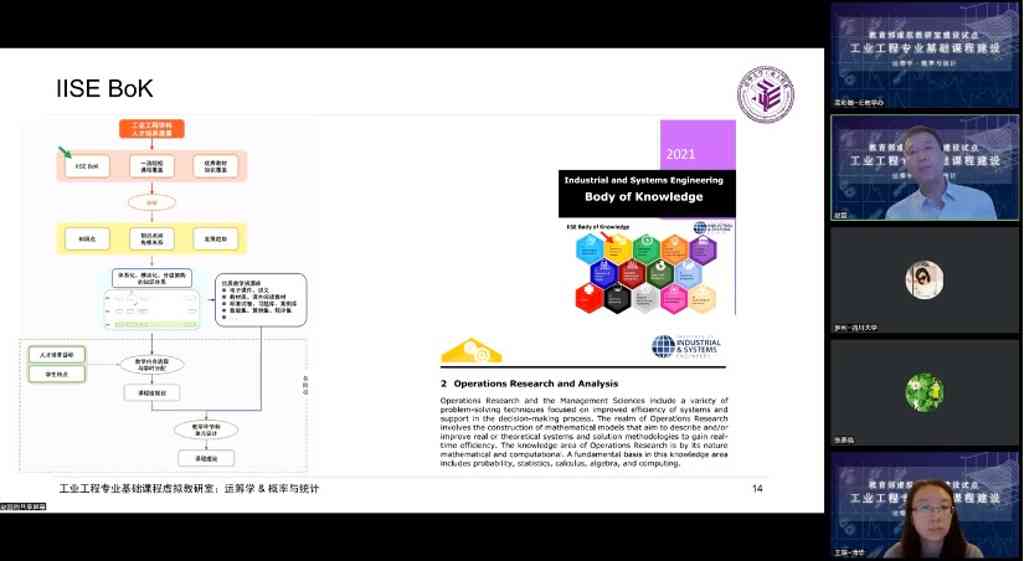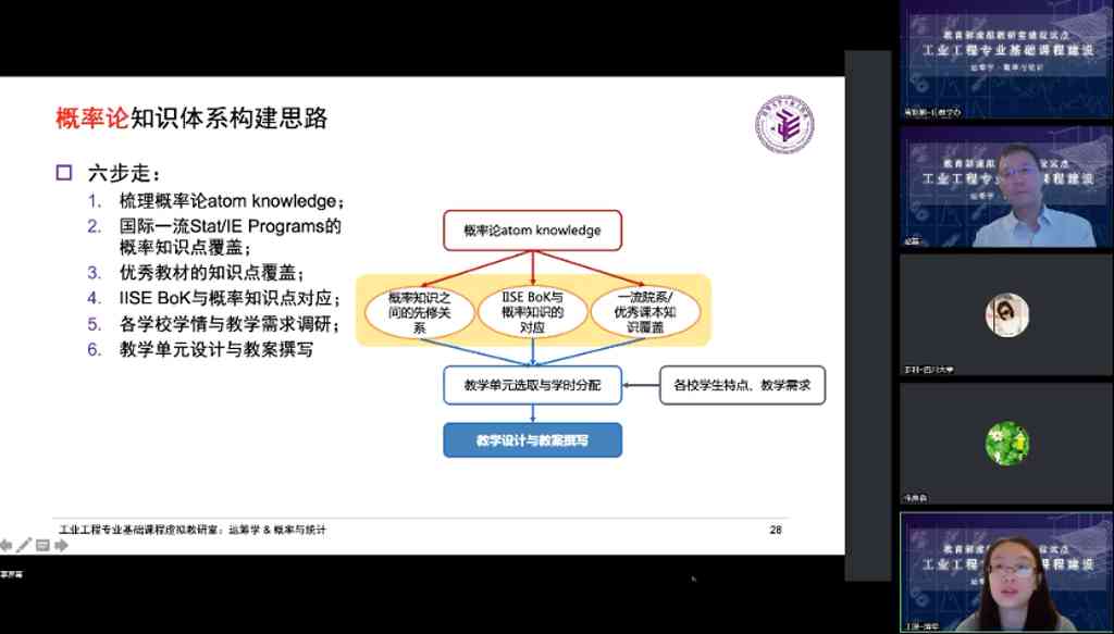 华体会娱乐平台工业工程系副教授赵磊介绍了虚拟教研室的建设思路和进展。他表示,虚拟教研室旨在通过建设具有时代特色、符合中国国情、有示范推广性的精品课程群,稳步提升学生的理论基础和工程实践能力。项目首批建设《运筹学》和《概率与统计》课程群,致力于建设体系化、模块化、分级架构的知识体系和优质教学资源库。