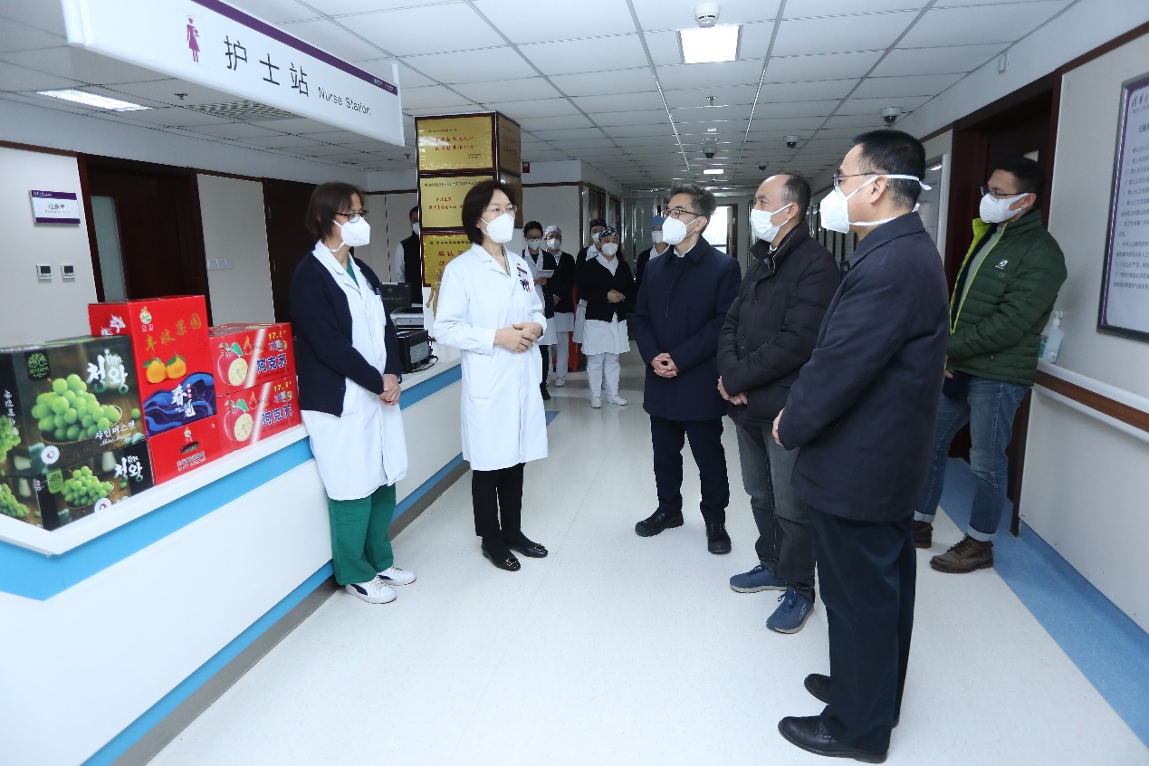 12月26日下午,王宏伟一行到北京清华长庚医院发热门诊、急诊、病房等一线,看望慰问医院医务人员、指导医院医疗保障工作。长庚医院院长董家鸿院士、党委书记周月红等陪同走访。